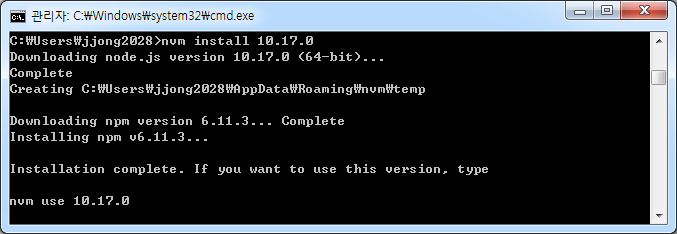 10.17.0은 설치하고 싶은 버전으로 변경 해 주면 됩니다.